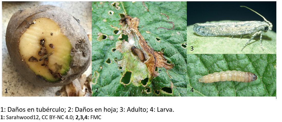 Es un lepidóptero cuya larva perfora los tubérculos formando galerías irregulares con presencia de excrementos que pueden constituir focos de pudriciones y son vía de entrada para otras enfermedades que deprecian o inutilizan la patata para su comercialización. El daño puede continuar durante el periodo de almacenamiento.